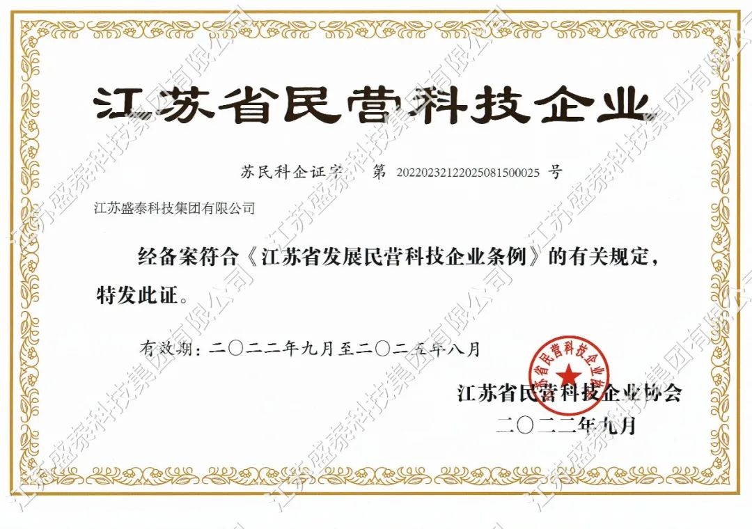 喜報 | 盛泰科技榮獲“江蘇省民營科技企業(yè)”稱號!